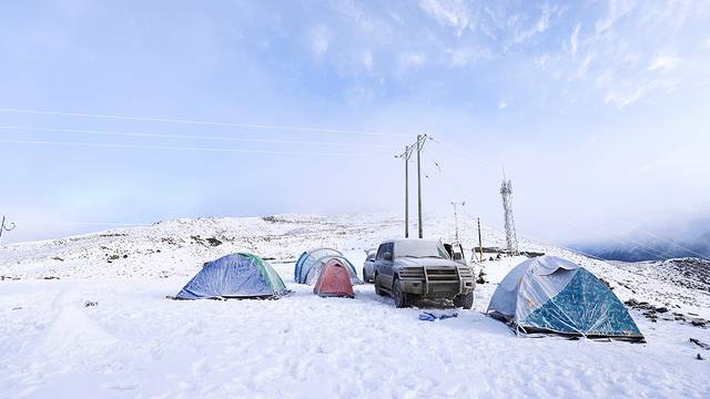 由于莲花湖也未开发,所以管理有时候是由着当地藏民叔叔的性子来。上山露营会收取一定的费用。自己的车只能开到山下的停车场,需要当地人带到山上的莲花湖边。