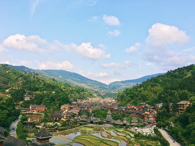 在进去侗寨之前,司机带我们到最高的观景台让我们拍照,那天的天很蓝,拍出来的照片不用修都很好看。