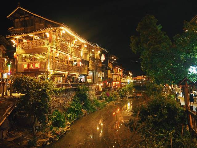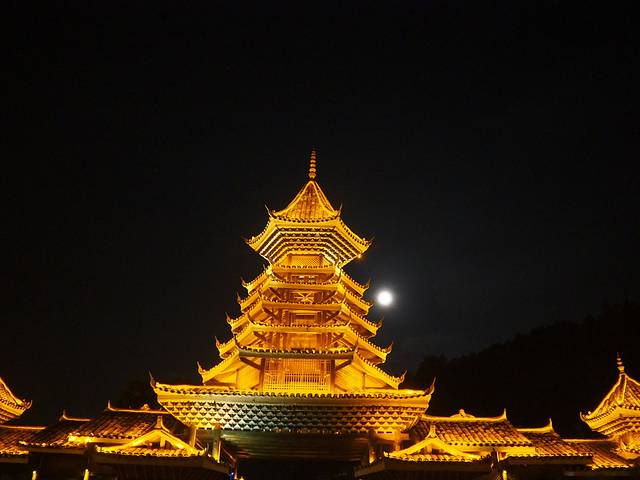 侗寨每晚都有当地人自发组织的少数民族歌舞表演供游客欣赏,因为吃完饭已经7点多了,表演8点开始,听路人说已经没有好的位置了,因此我们决定隔天晚上再去,当天晚上四处绕绕看了真个侗寨的夜景。
