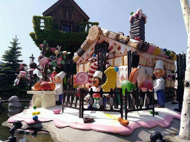 图为童话般的造型。如果带小孩可乘坐蒸汽小火车穿梭在童话般的小木屋,树林之间。