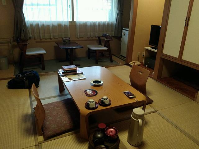 客人可以入住配有榻榻米(草编)地板和传统日式床垫的日式客房或者选择西式客房。所有客房均配有空调、冰箱和洗浴用品。部分客房设有私人温泉浴