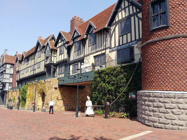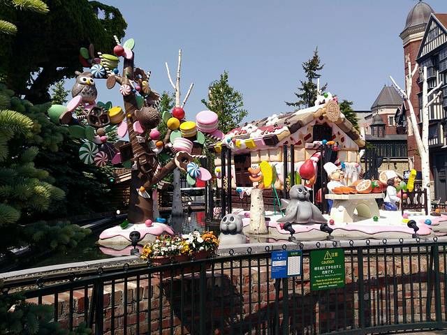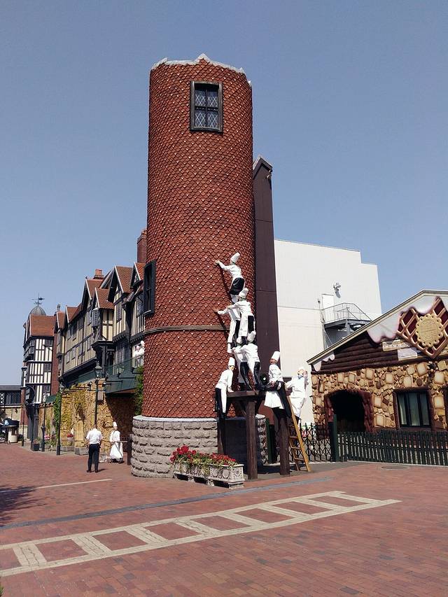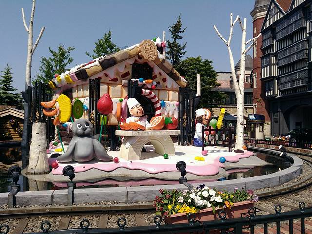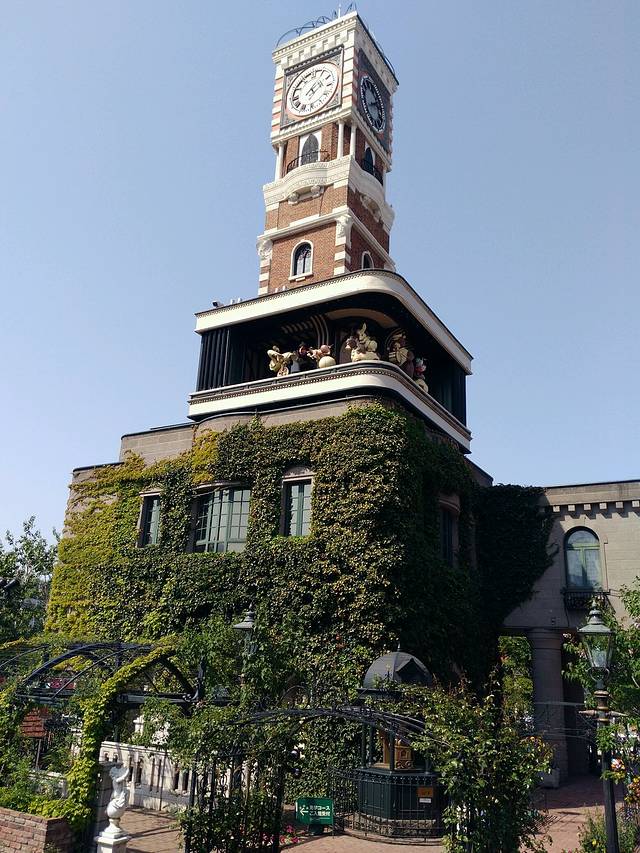 图为公园内一栋像童话城堡🏯的红色大楼,里面就是巧克力工厂了。外头有一座人偶钟楼,每到整点会有“巧克力嘉年华”,钟塔上的人偶开始唱歌跳舞,非常欢乐。