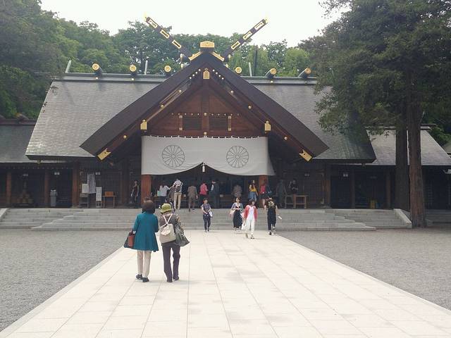 "北海道神宫位于圆山公园中,从明治初期就开始祭祀“开拓三神”,作为“开拓民的心灵家园”。如今这座神社也与当地人的生活息息相关,如正月参拜、驱邪、节分、婚礼等时都会举行传统神事。神宫的院内绿荫浓郁,环境宜人,不时还能看见松鼠的身影。尤其春天来到时,樱花与梅花竞相开放,吸引着无数赏花人的前来。在北海道开拓初期,由于北海道地区多与桦太、千岛等地相对望,而且为了针对俄罗斯的防守需要,神宫的正门是向着东北方的。
