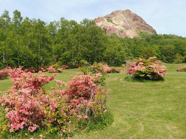 昭和新山至今它仍是一座正在成长的"新山",且还可望见不断地有白烟从红褐色的山脉中喷发。