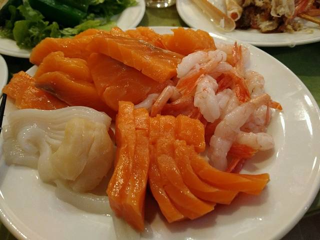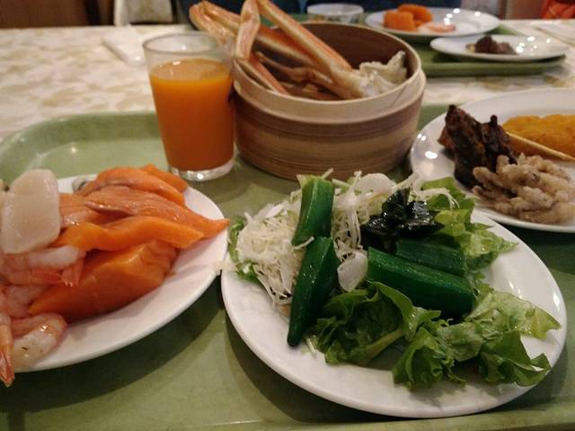 入住汤滨酒店后,放下行李即去餐厅吃自助海鲜晚餐。晚餐海鲜还是比较丰富,且人员不多,我主要选了北海道三文鱼,足足盛够两大碟子,味道好极了。