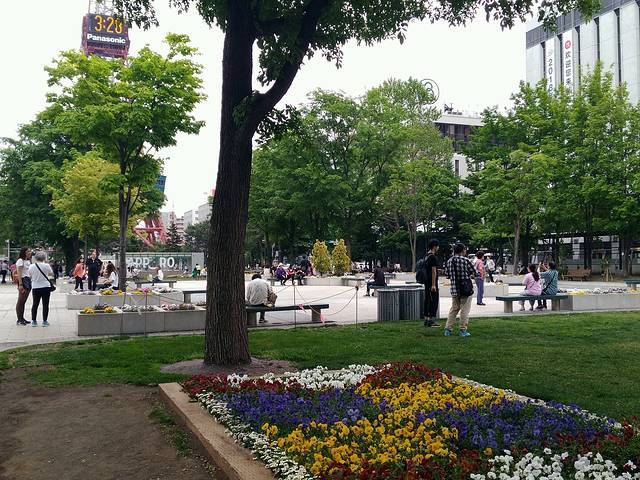 個『大通公園』形狀有如長布條,雖然寬度僅有 150公尺,但是長度卻從西一丁目一直延伸到西十三丁目,總長達 1.5公里,其位於札幌市中心鬧區的地理位置,不僅是北海道市民休憩的好所在,每年 2月舉辦的札幌冰雕雪祭也在此地登場,至 2002年已進入第 52屆。