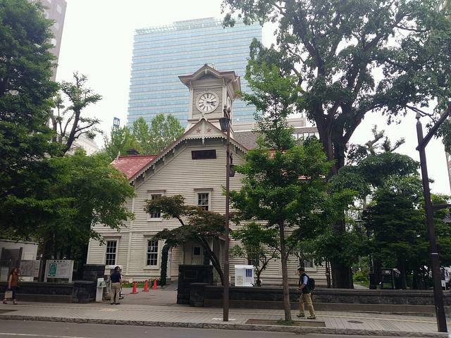 札幌市区大楼中间,在树荫围绕下一座由白色墙壁和红色房顶组合而成的木制建筑吸引着路人的目光。这座建于明治11年(1878年)的古钟楼,在当时是札幌农学校(现北海道大学)的舞台,后被修整为历史资料陈列馆。有130多年历史的美国产的机械时钟,现在仍准确地履行着报时使命,作为现存日本国内最古老的钟楼,被列为国家重要文化财产。游客可以在此看到时钟的构造、聆听报时的钟声,并且在钟楼前面还有专门用于合影留念的平台。