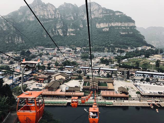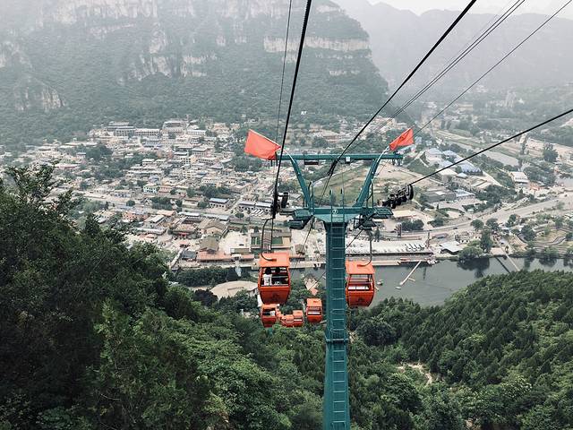 1:购买了景区套票后,沿着通道来到索道缆车上行口,进入车厢内和老公开始观赏并拍摄美景。