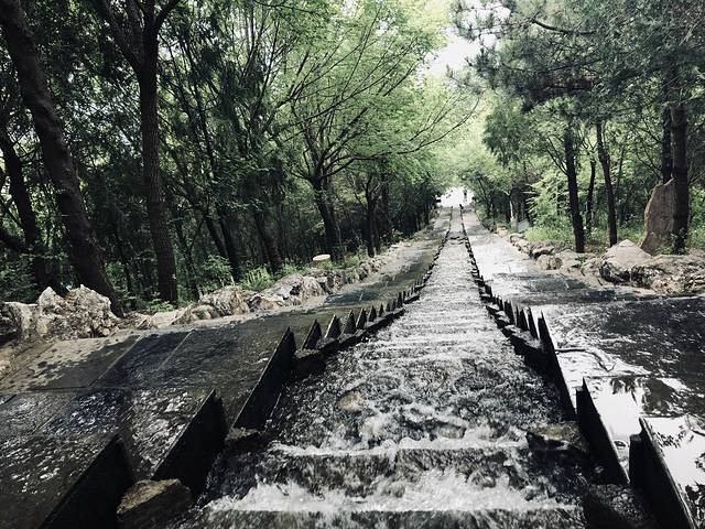 通过这个流淌着山泉的台阶上到山的一半