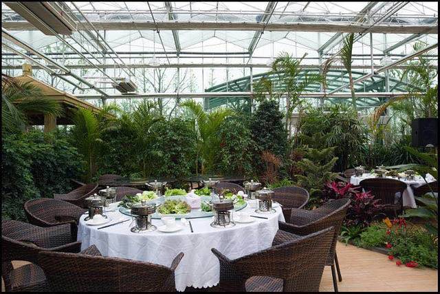 吃饱饱,环顾这阳光餐厅。满眼绿色,随处都是花草,为了确保四季恒温,阳光房顶部采用是自动遮阳布,它可以根据阳光和紫外线的强度,来自动调节。和三五好友一起过来,下雨的时候听雨,阳光好的时候享受太阳,就着这满屋馨香,在生机勃勃的餐厅里,吃饭也会香一点呢。