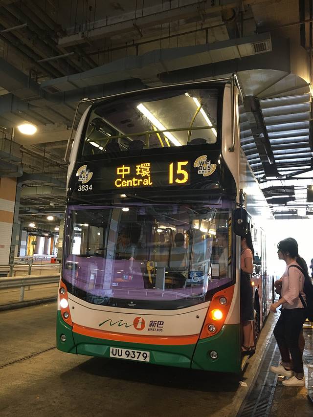 香港站出站找到巴士站乘坐15号巴士(新巴)普通线直达太平山顶。