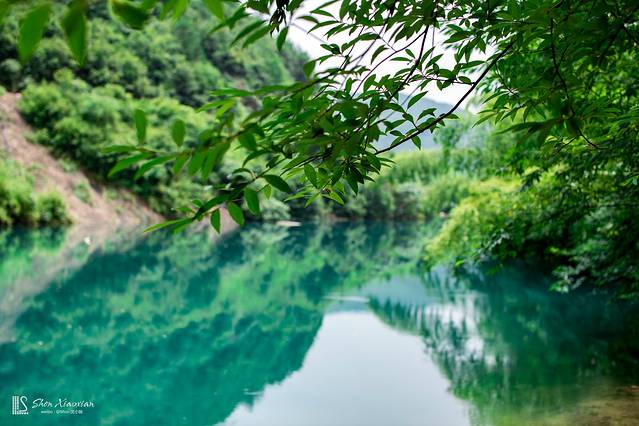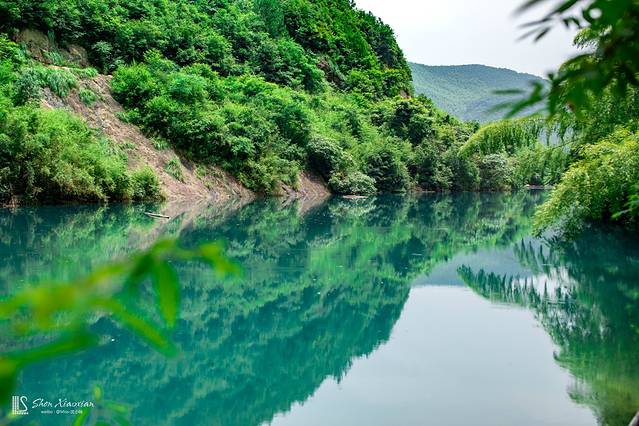 在瑶坞村有一个被称为“小九寨”的大斗坞水库,与别处的水库不同,这里水的颜色美得像一整块巨大的绿宝石,倒映着竹林的影子。