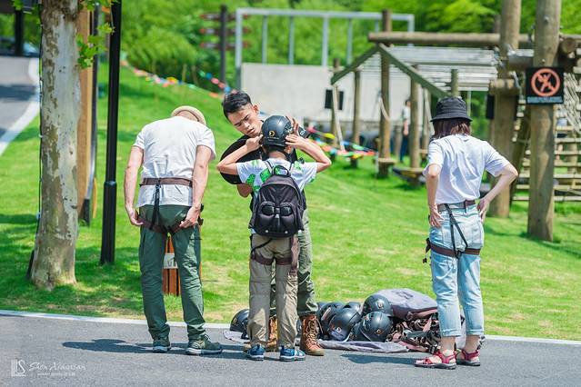 教练会手把手教你安全装备的穿戴要领:安全帽正反要分清、安全带必须扎紧、牛尾的保护扣要从下往上扣在绳索端等,带上你们的勇气,Let's go!