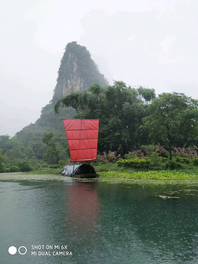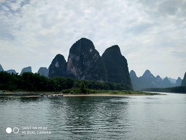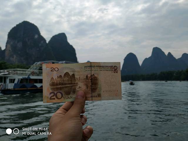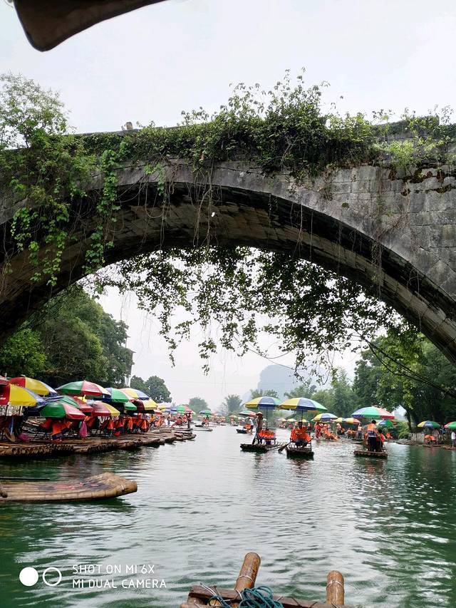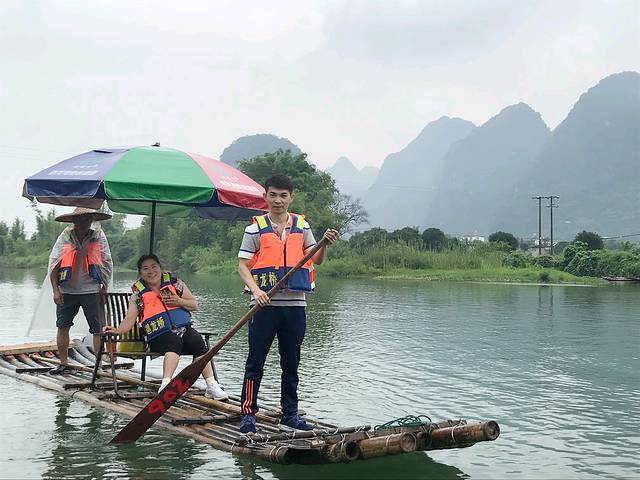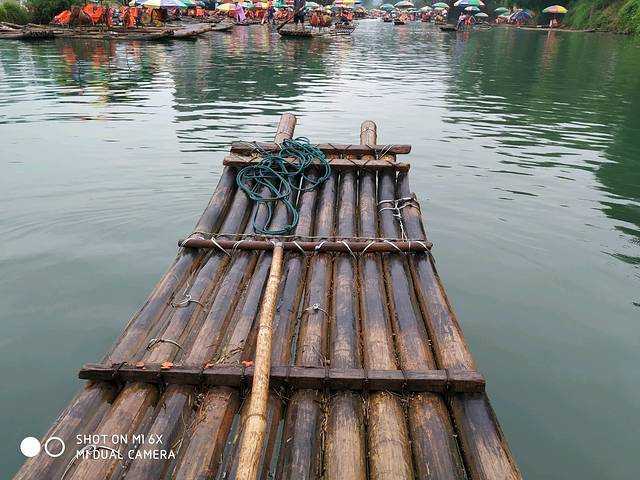 就是坐着小船筏,在漓江水面开一圈。看看山水。我都怀疑这船不是竹子做的,是PVC管刷的漆。