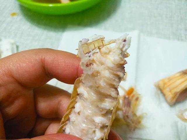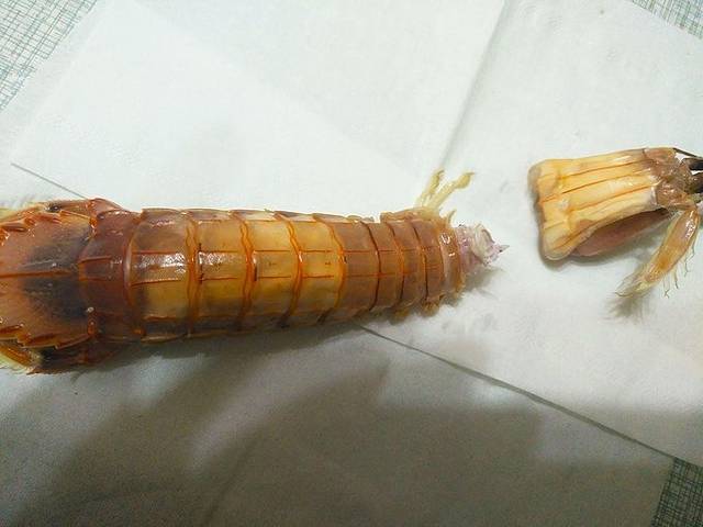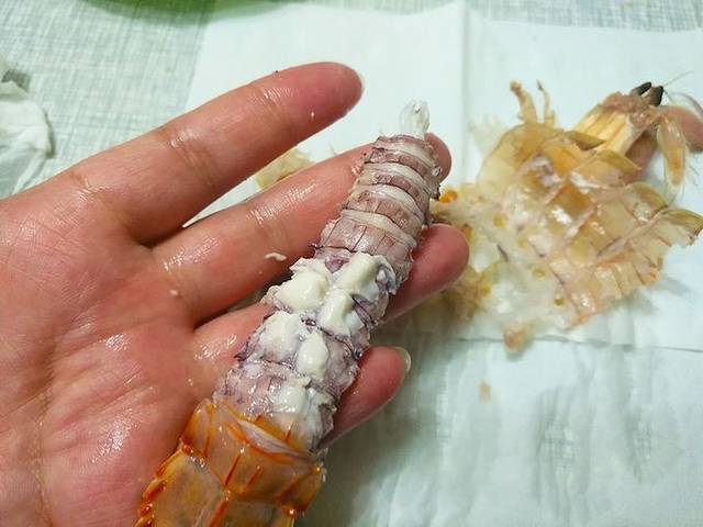 吃虾婆很棘手,因为身上全是刺和腿,下面是我回家后按照阿姨较的,我又拍摄的一组照片,全程解析完整剥虾婆皮的过程,大家看后不要再用嘴咬、牙嗑了,也能剥个完整的虾婆吃了。