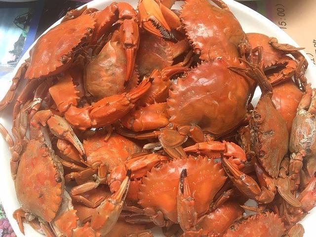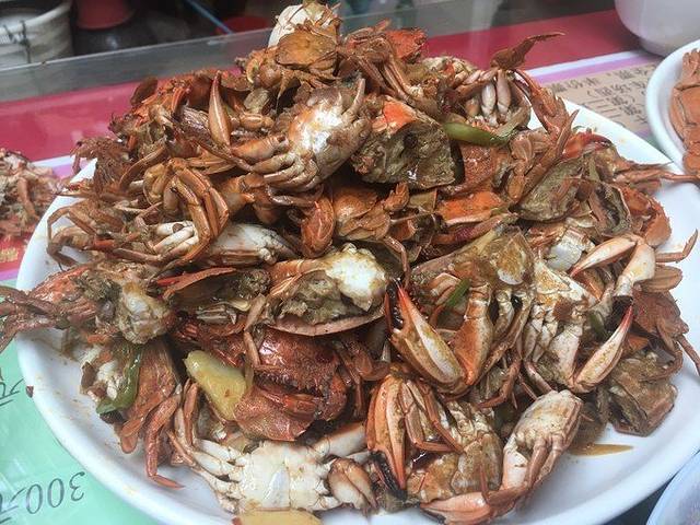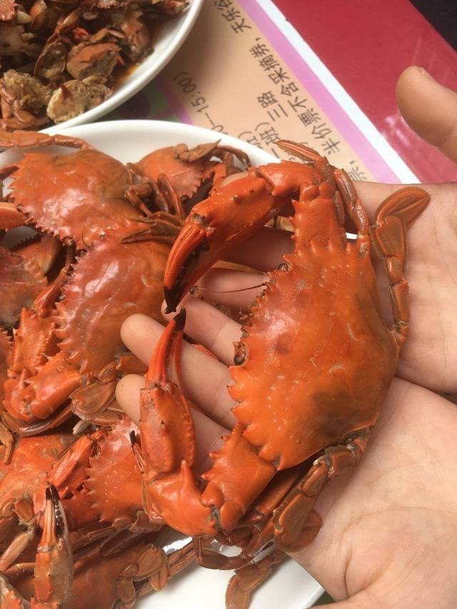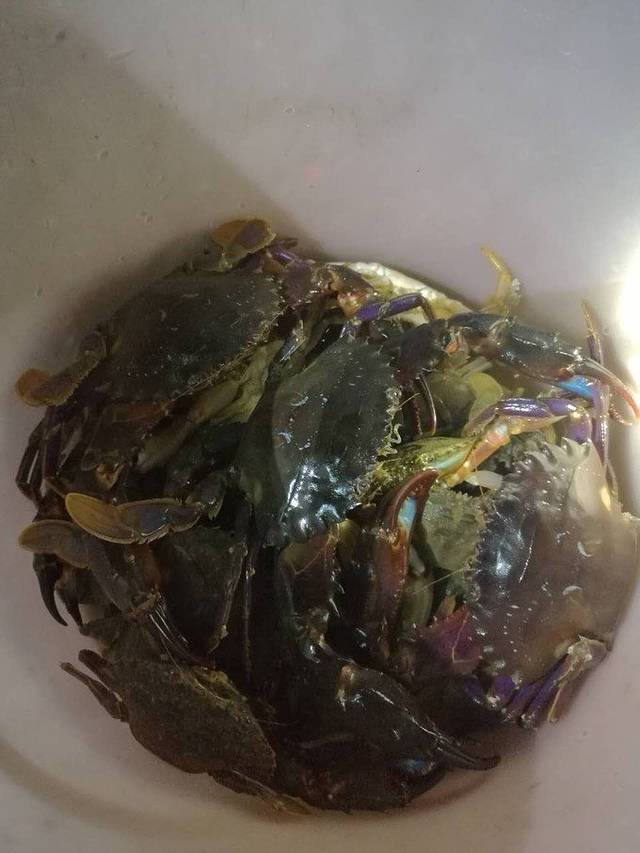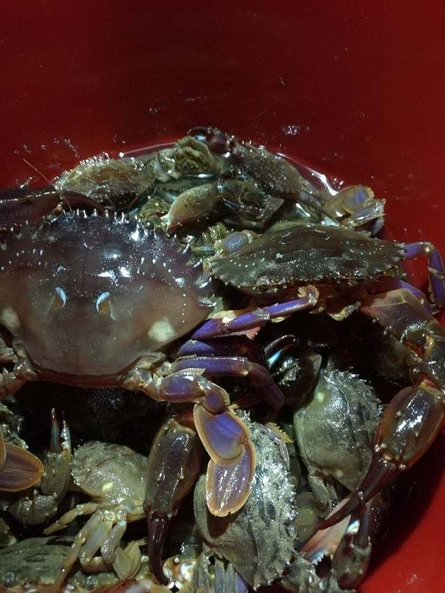 中午开始享受赶海收获的时刻,大一点的清蒸,小一些的切开两半炒香辣蟹,老板家最大的盘子都装不下。
