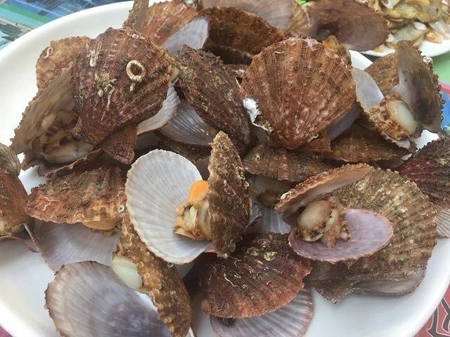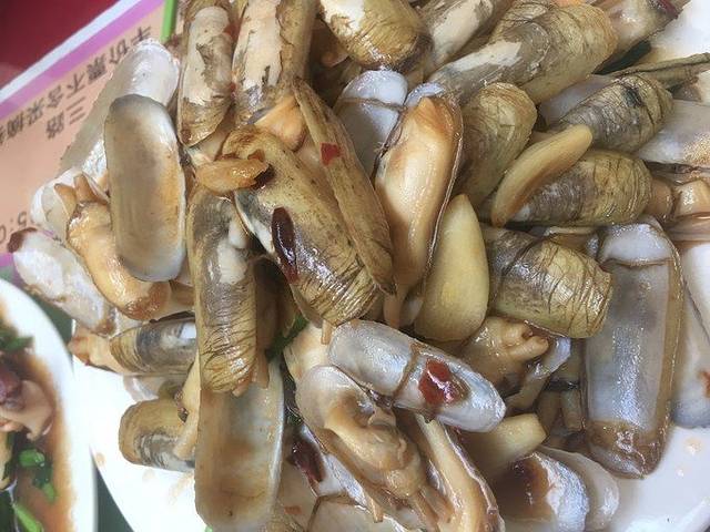 哈哈,是不是感觉我们是吃货? 惭愧惭愧,确实也是吃货,这菜是四人分的。我最喜欢扇贝,很鲜很甜,海边吃不像在家里买的或酒店都有沙子,这里的扇贝很干净就蛏子有点沙,炸舌头鱼也是我的最爱。