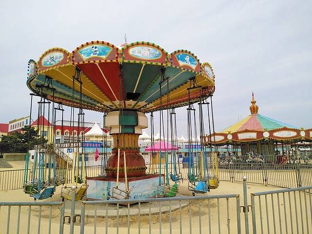 海边娱乐设施摆在沙滩上,夏天一定很热闹