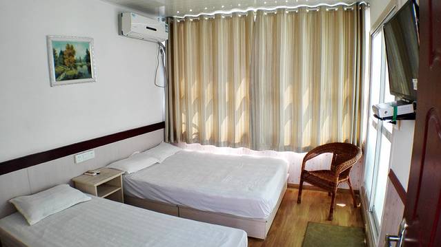 我们的房间在二楼,房间是大床加小床,一个房间能住三个人,空调、液晶电视、独立卫浴,卫浴里是热水器,可以洗热水澡,渔家也有免费wifi,对于我们这些离不开网络的网虫们太重要了。