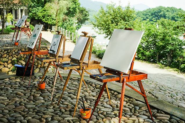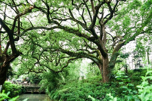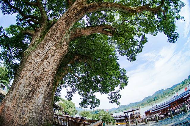 从丽水市区向西南驱车半个多小时,坐落在青山脚下被碧水茂林掩映着的古堰画乡,便赫然出现在眼前。小径幽幽,沿着鹅卵石铺就的古道,一处处被苍天古木遮掩的民国风建筑错落有致。