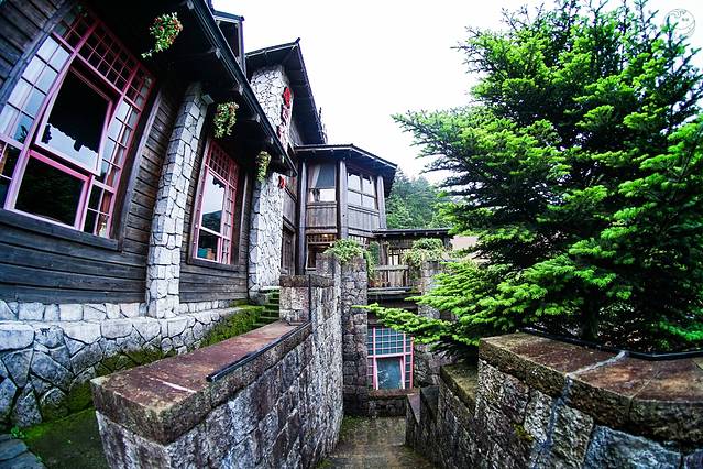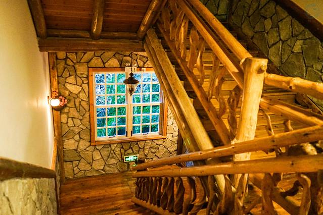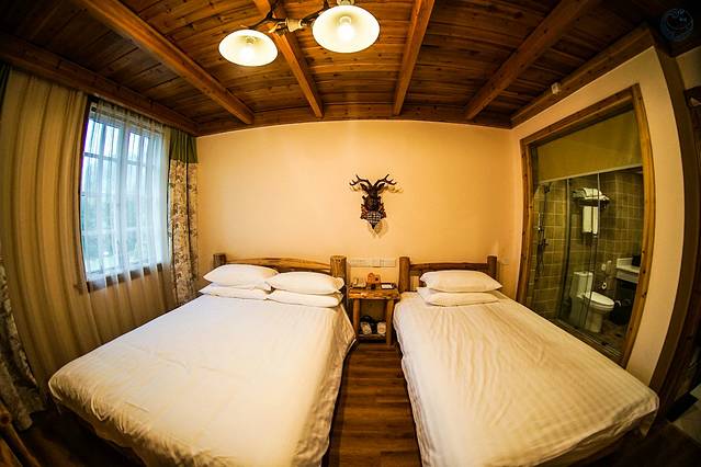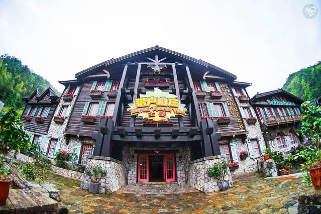猎户山庄一如其名,原木结构的联排房屋,麋鹿角、象牙点缀其中,威风凛凛之中更增添了无限野趣。从房间推窗望去,鲜花满眼,绿意盈盈,犹如置身童话世界中猎人的森林木屋。