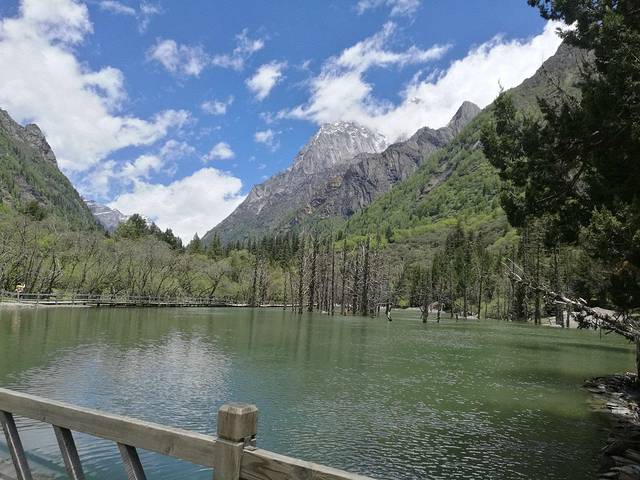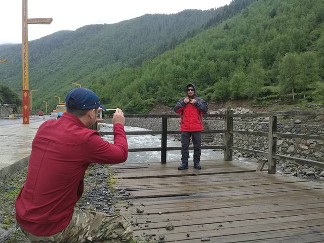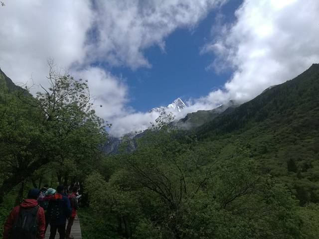 6月10日。吃完早饭后在一个向导的带领下,向长坪沟出发。长坪沟是开发得比较完善的景区,在沟里能看到幺妹峰。向导在景区门口帮我们买了票,坐中巴车上山。进入景区后全程都是木栈道,旁边就是雪山上的雪水流下来冲刷而成的小河,一路有树荫。海拔适应就是沿着栈道徒步,不能走得太累。途中有个叫“虫虫脚瀑布”的景点,需要爬台阶上去,来回半个多小时,竟也累得够呛,在高海拔地区,实在是不能高估自己。从“虫虫脚瀑布”下来时,JJ突然发现自己的墨镜不见了,也不能肯定在哪里弄丢的,我们安慰JJ,实在找不回来就在山下买一个,或是跟ZX借一下了。JJ从此一路有心事。我们继续往前走到一处叫“枯树滩”的地方,停下来啃掉了带上来的路餐。向导不让我们继续往前走,说ZX有规定不能搞得太累。我们答应她再往前转一圈就回来,不费很多时间。我们刚往前不久,JJ竟然想起了他的墨镜掉在哪个地方了,估计是在虫虫脚瀑布前我们跳起来拍照时他把墨镜挂在帽子上被甩到后面瀑布去了。于是也没啥心思再往前走,往回赶去找墨镜。往回走的路上,JJ一马当先,YB紧随其后。等我们回到虫虫脚瀑布,JJ已经上去了,YB见我们来了,让我们看好行李,也上去了。过了不久,JJ戴着他的墨镜满脸笑容跟YB下来了。这货竟然越过瀑布围栏下去把墨镜捞回来了,然后便是吹嘘是如何的险境,一路回程有说有笑,不在话下。回到ZX家大概两点多,共徒步10公里左右。又休了个下午觉,晚饭在ZX家吃。饭后又想着去弄两个青稞饼准备第二天上山时吃,却又觉得再走去镇中心太远,于是走到“仓央家的餐厅”,让他们弄了两个青稞饼,特意交代要弄厚一点,顺便扫荡了他们家剩下的4个馒头。在旁边点了几斤烧羊排,一边等加厚版的青稞饼一边啃烧羊排,啃完回去美美地睡觉。睡前ZX给我们每个人检查了装备,有遗漏的他凑齐给我们。按登山下来的同志建议,决定第二天从打尖包到大本营骑马,以保存体力冲顶。