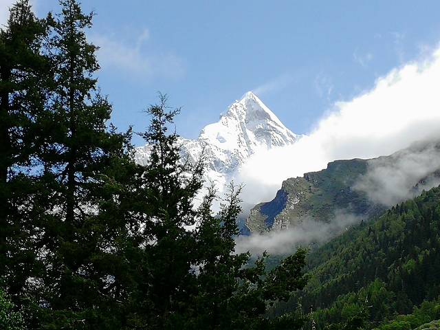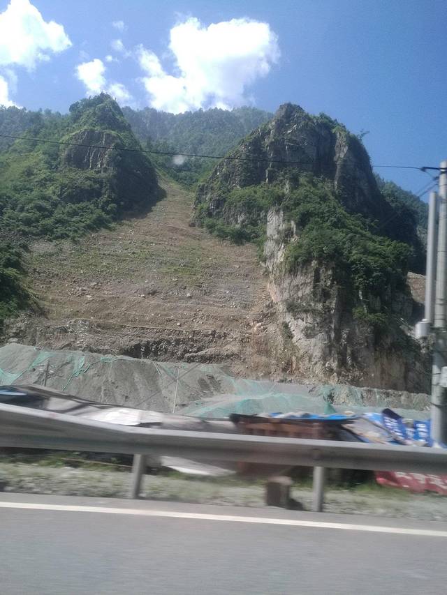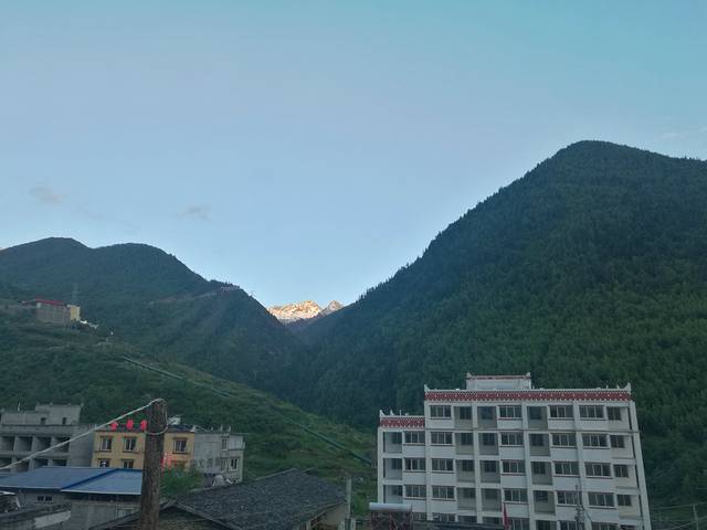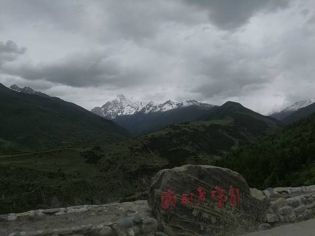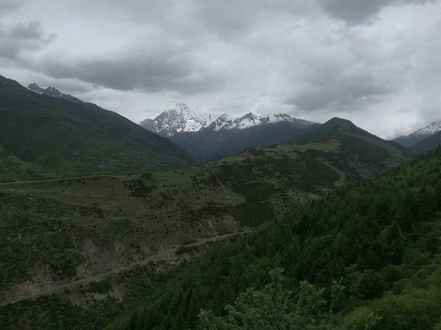 6月9日。上午9点,坐上ZX安排的车辆前往四姑娘镇。从成都到四姑娘镇大概220公里的路程,出了市区就是盘山公路。经过映秀,两边山上可以看到地震留下的伤口,公路上时不时会有落石,藏族司机开车飞快。一路上海拔逐步升高,最高时在3900米左右,那时已经可以看到周围的很多雪山,在离四姑娘镇十来公里一个叫猫鼻梁的地方,有个四姑娘山的观景台,可以看到四座雪山并排矗立在那里,挺好。顺便买了些牛肉干,秒杀成都买的,价格也便宜些。中午一点左右到达四姑娘镇,海拔回落到3200米左右。