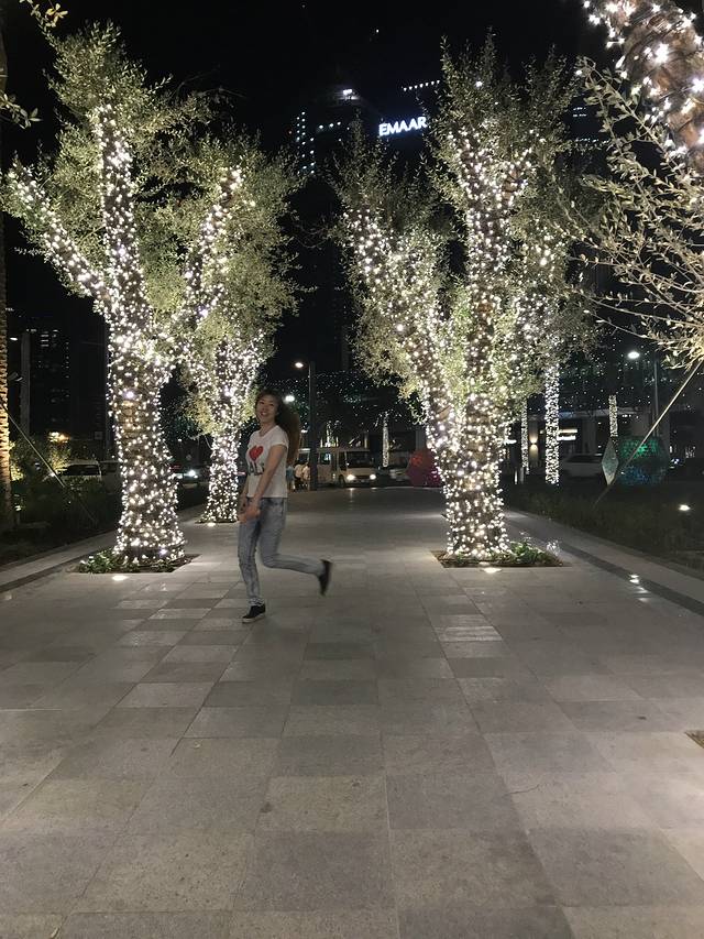 在塔底下小广场瞎蹦哒,还遇见了一个漂亮的阿拉伯姑娘,特别欢乐的用手机自拍杆自拍,特意把我们也拍进去当背景,我们也不知道为啥哈哈,之后就去阿联酋航空提供的酒店休息了,实在太累了。酒店干净整洁,还有晚餐券,但是我实在没力气去吃了,果断洗洗睡觉,也就睡两个小时就要到机场换乘下一班飞机去毛里求斯啦~