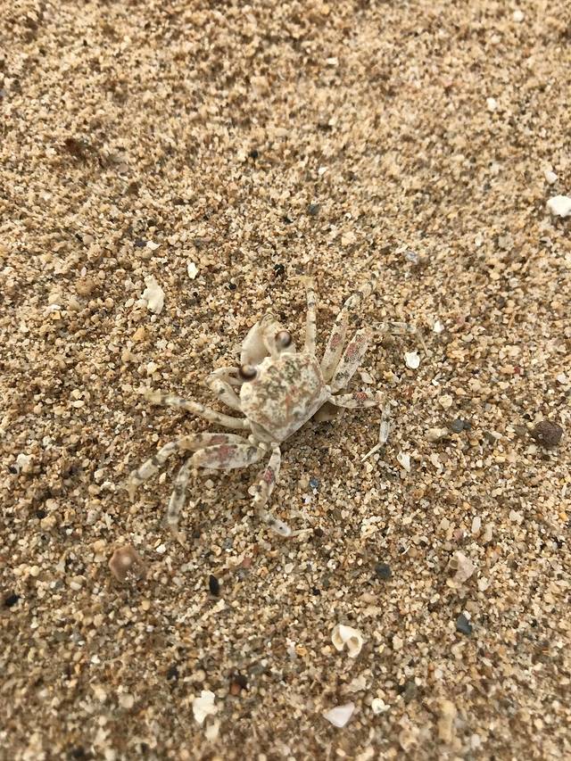 酒店的沙滩上珊瑚很多,所以有点扎脚,不过有特别多的小螃蟹,很可爱,总是在沙滩上挖地洞,不知道通向何处。