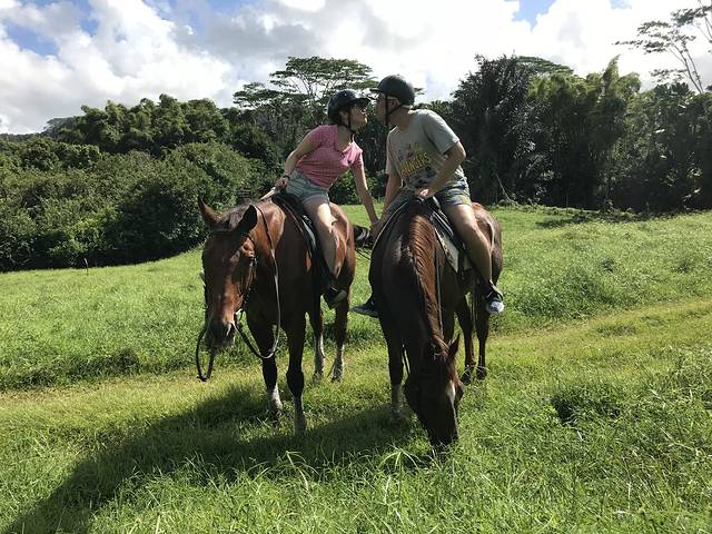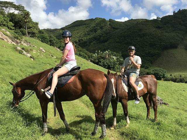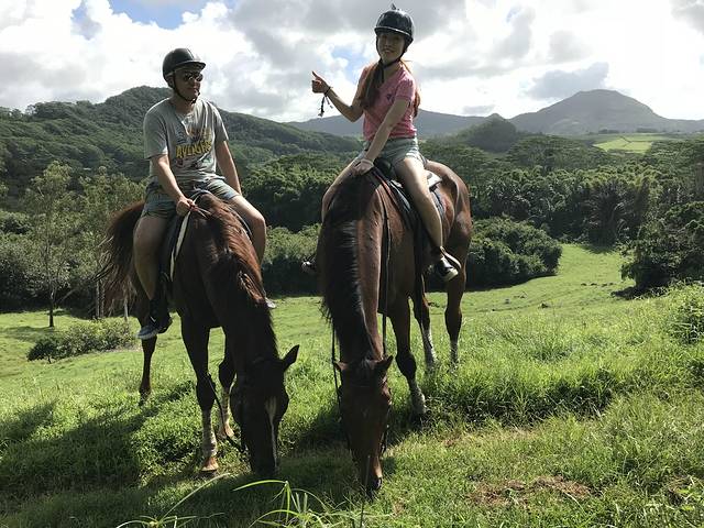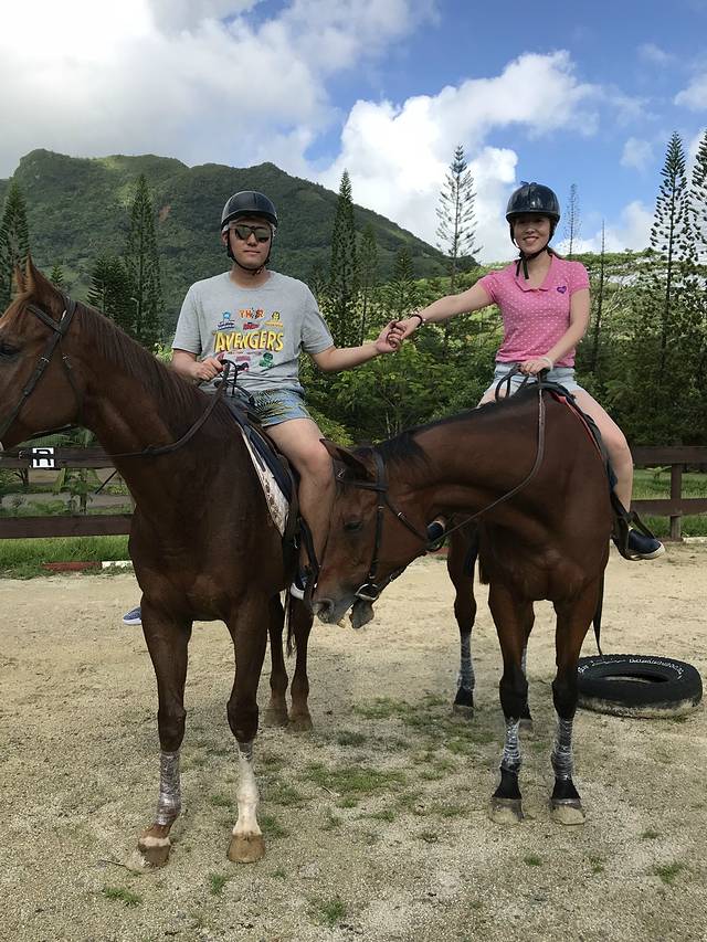 这里风景真的超级好,绿树成荫,青草依依。可惜我们并不能骑着马儿驰骋,只能让工作人员牵着马才走,所以多花了200块钱。