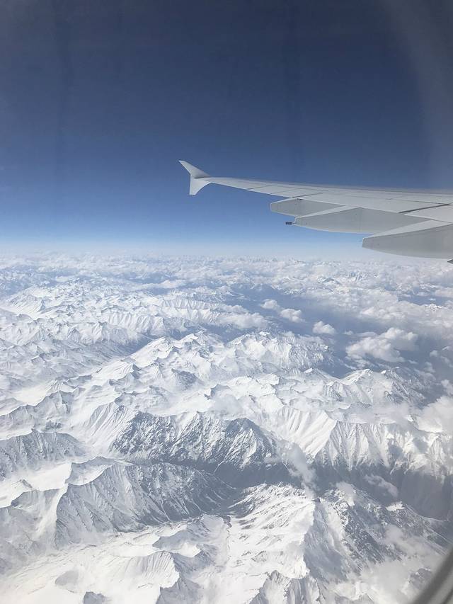 回来路上听见别的乘客一阵骚动,发现原来是窗外有雪山,不知道是不是喜马拉雅山脉呢~