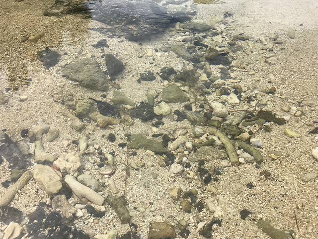 礁石圈出来的水坑里,也有很多小鱼苗在游动