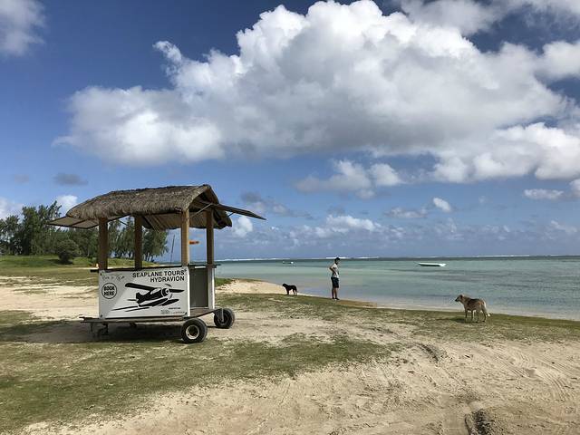 经过6个小时的飞行,终于从沙漠到达了碧海蓝天的毛里求斯,落地时间是上午10:30。