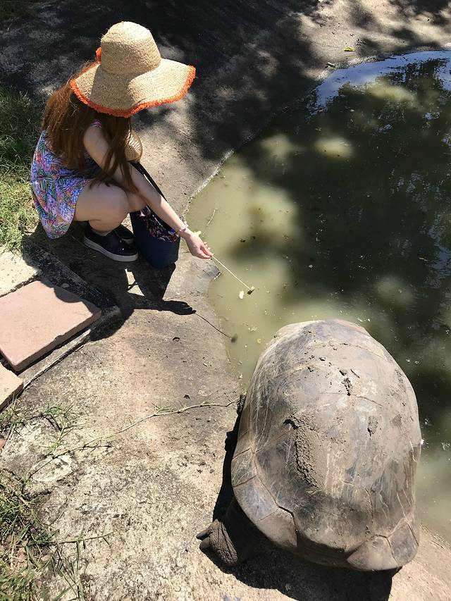 这里的象龟比卡塞拉的大一些,而且喂象龟是用绿色的植物,比卡塞拉好玩一些,可以和象龟拔河,力气可大了,不知道这是什么植物他们这么爱吃。
