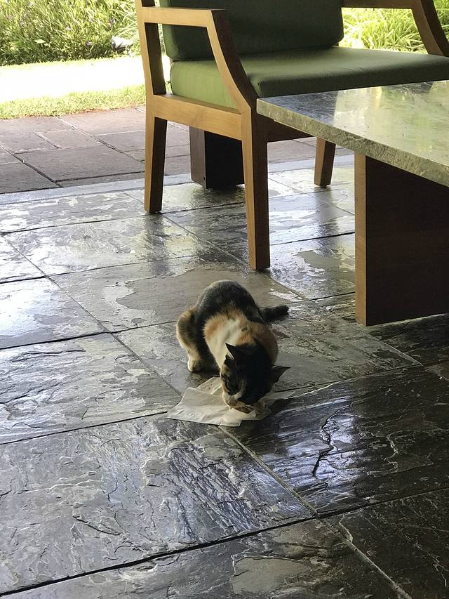 早上起床先去吃早餐,酒店就像大花园,环境好人少,还遇见了可爱的小猫咪。