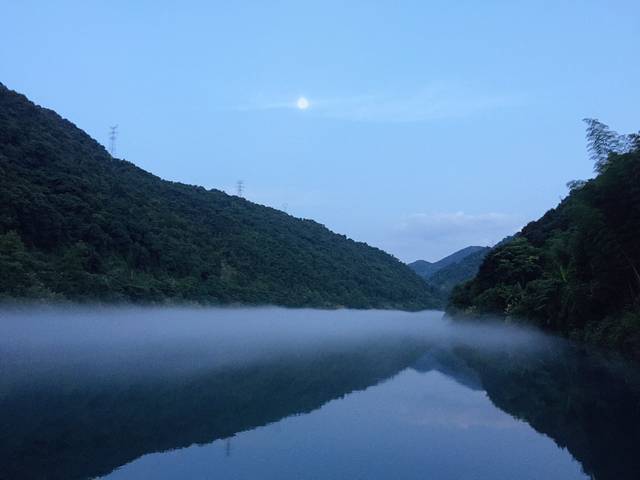 傍晚雾漫漫出现了,身在雾海中,听着虫鸣鸟叫。初升的月亮倒影在镜子般的湖面上,这幅画面能让人安静沉淀下来。