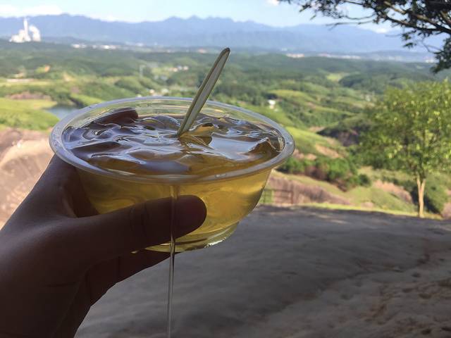 爬到第一个顶,有当地朴素的农民爷爷在卖凉粉,老人每天这么爬上来不容易,我们每个人吃了一碗。