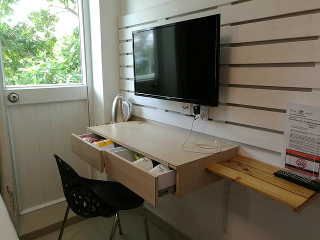 设施齐全。有热水壶,茶包,咖啡,风筒,转换插头,拖鞋,毛巾,牙刷等洗浴用品。热水器开了后,水会很热,要注意调控,不要让小孩自己洗澡,恐防烫伤。酒店房间提供免费WIFI。