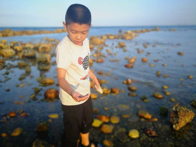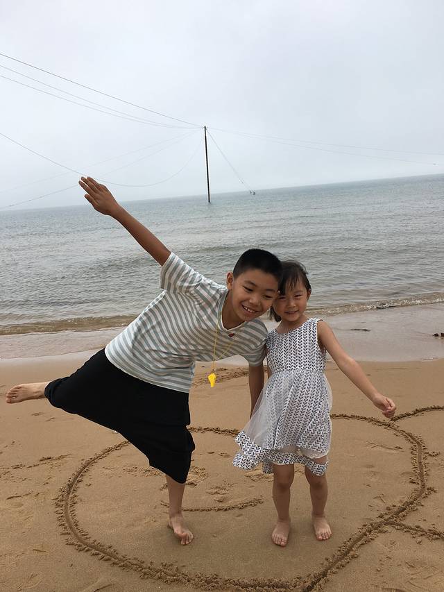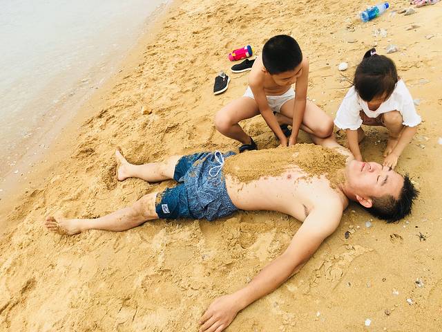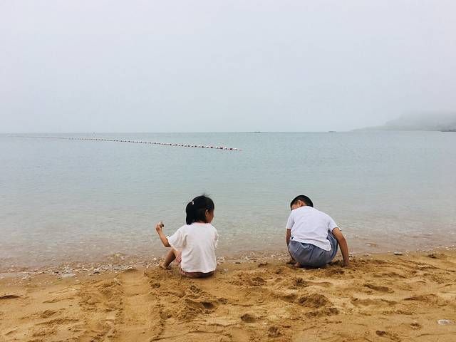 渔家附近的海水浴场,没什么人,孩子们就是喜欢玩沙子