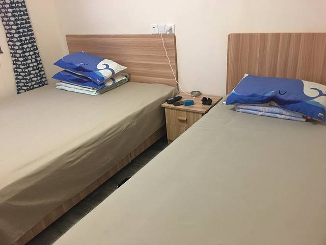 到了威海我们安排了住宿,就下楼吃饭了,酒店是公寓式的挺大的,两张床的家庭房,而且特别便宜,一晚100多