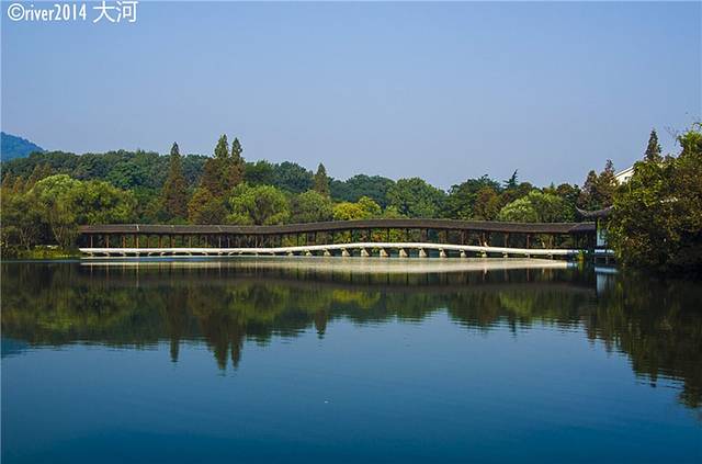 我会带你去浴鹄湾,霁虹桥在山环水绕之间,亭阁婉转幽美,没有了西湖断桥的拥挤,你可以安静地坐看廊外风云。