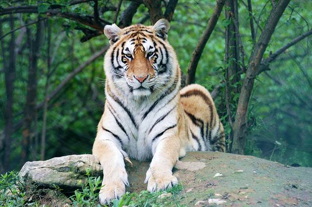 被阳光和树阴渲染成斑驳光影的岩石,与东北虎斑驳的花纹极为相似,一头大老虎卧在上面一动不动,不特意细察还真发现不了。