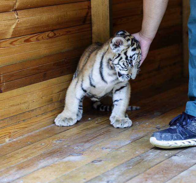 穿越过成年东北虎散养区,伴随着电门沉重地开启,开始步入幼虎区。