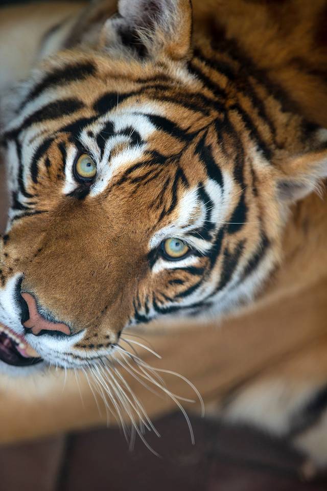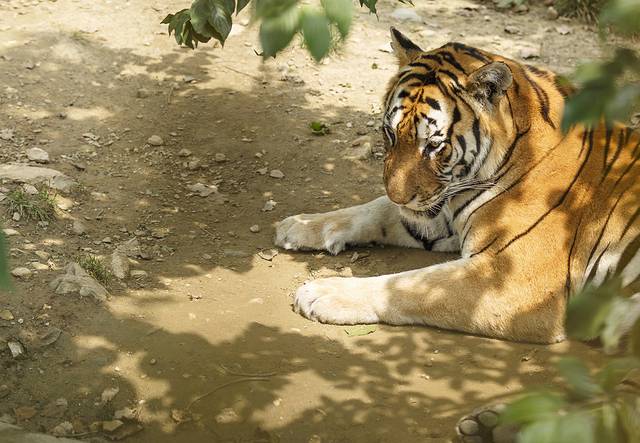 猛然看见一只老虎卧在距离自己不到半米的地方,虽然早有心理准备,小心肝还是忍不住颤抖了一下。