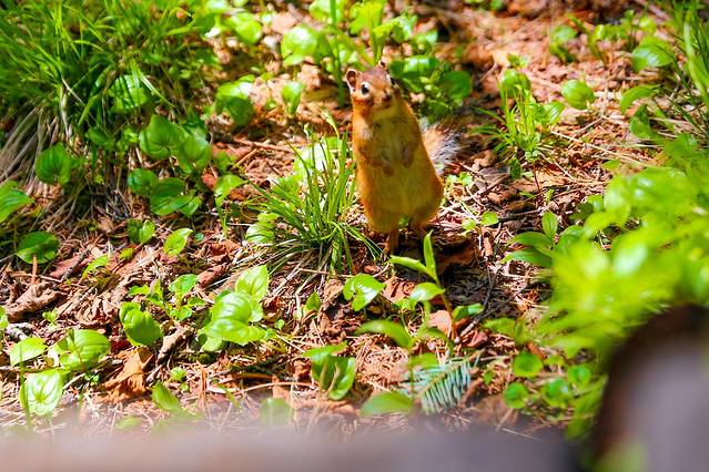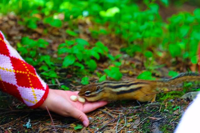 切记带点小零食,超多的小松鼠,在你面前跑来跑去。