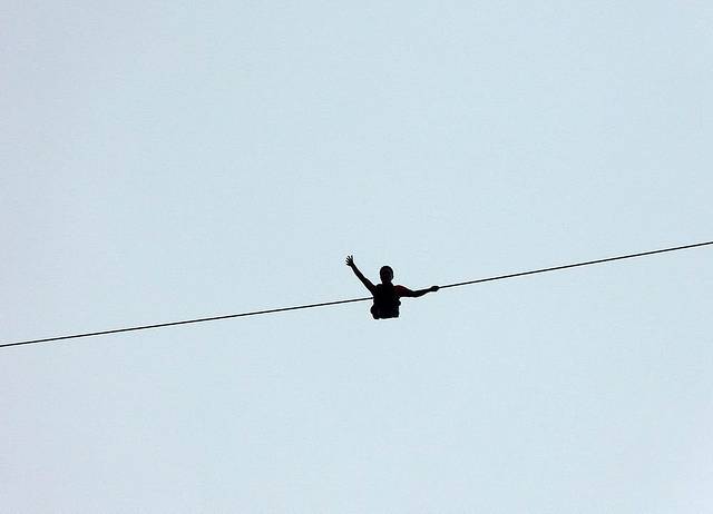 表演时间在一小时之内,这是演员在钢索上翻跟斗。