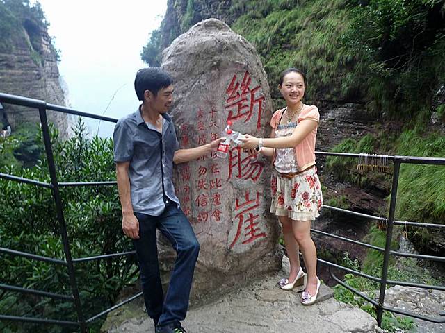 断肠崖因为是《神雕侠侣》的外景地而名声大噪,游人到此总要和刻着“断肠崖”的石碑合影,再回味一番小龙女在断肠崖一跃而下的画面。