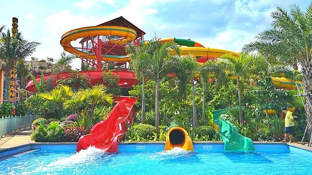 海南省三亚市宋城浪浪浪水公园,是三亚宋城旅游区继三亚千古情景区、三亚宋城冰雪世界、三亚宋城彩色动物园之后又一重点项目。园区内有浪迹天涯、穿越时空、三亚号角、山涧穿越、鸳鸯滑道、彩虹滑道、丛林漂流、欢乐水寨、弄潮儿等数十项水上游乐设备全新奉上。