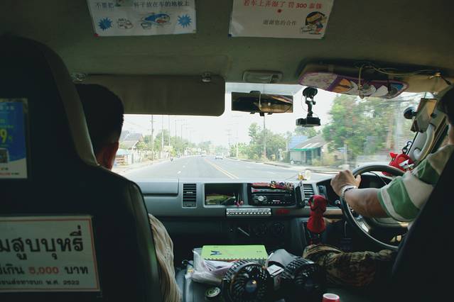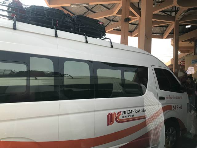 人多去包车,人少选择Minibus,飞猪买的车票,Prempracha公司的(还有一家AYA公司也可以),30块/人,一天多趟,我们买的上午10:30的,从酒店直接接到车站,车站统一坐minibus去拜县,行李放车顶,说明上是24寸以内的箱子1件免费。全程3个小时左右,一车13人,清迈到拜县山路崎岖,容易晕车的人记得提前吃晕车药,别座最后一排。