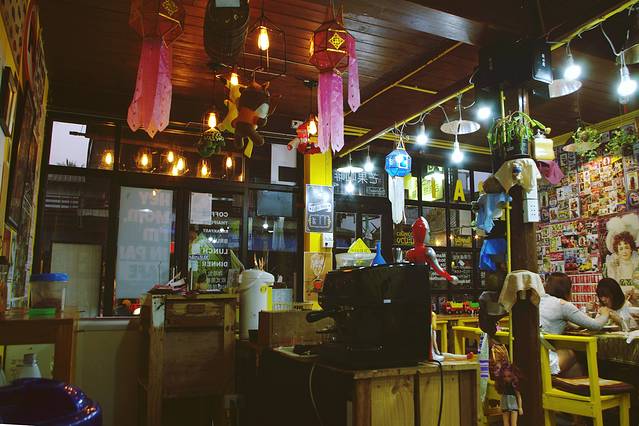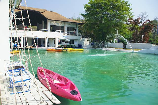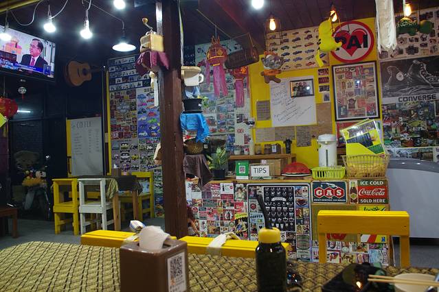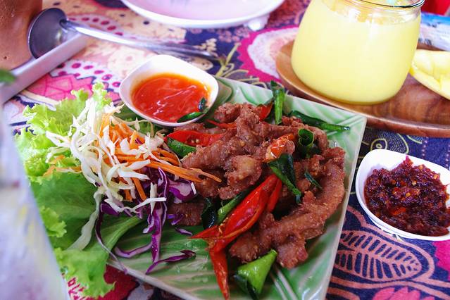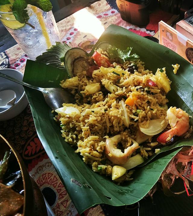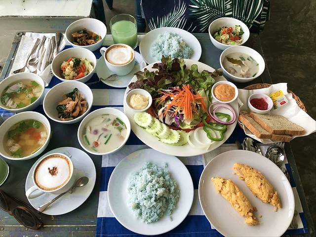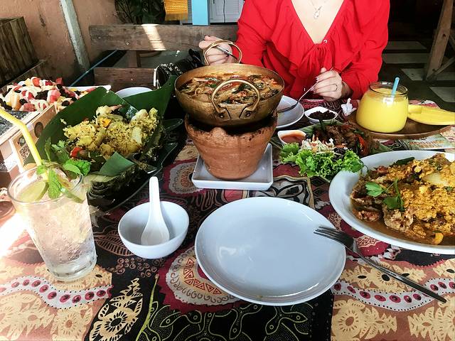一觉清醒,已经临近中午,收下老板Leo的一波硬核攻略,我俩决定就近到Leo口中这家还不错的餐厅解决午饭,WISHING TREE餐厅就在言谢民宿的街对面,对于初到清迈有些受不了泰式高温的我们来说,无疑是个好消息,木屋餐厅依湖而建,放眼一片岁月静好(晚上吃的话带足驱蚊液,不然要被蚊子活剥)。餐厅主营改良版的泰式料理,味道还可以,喜欢送的零嘴虾片,建议大家点菜的时候下手要轻,因为菜量真的非常大,我长这么大第一次见那么大盘的水果沙拉。意料之内的没有吃完,在我娇“你再不也不要点菜了”的总结中,倔强的打包了那份超级大盘的水果沙拉。